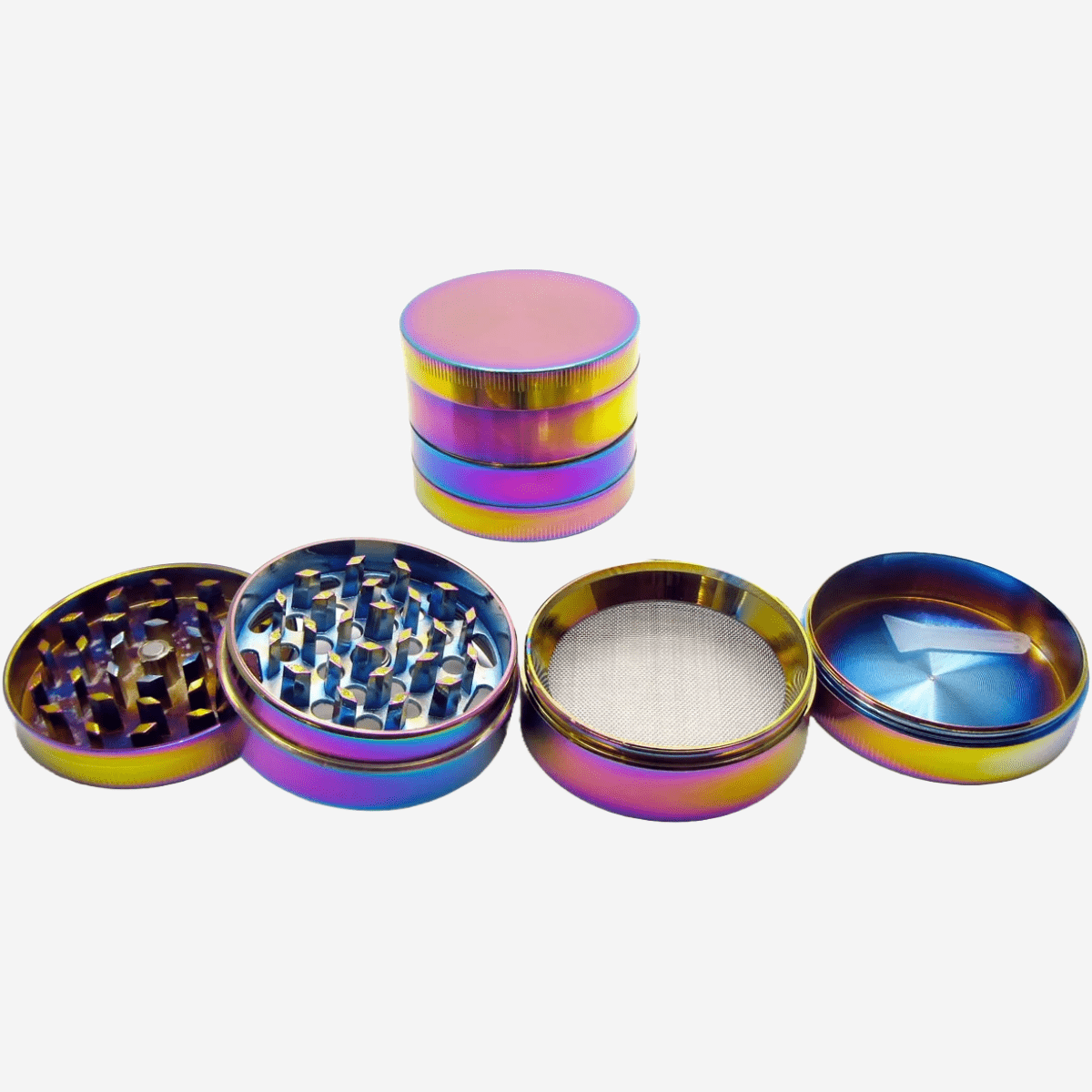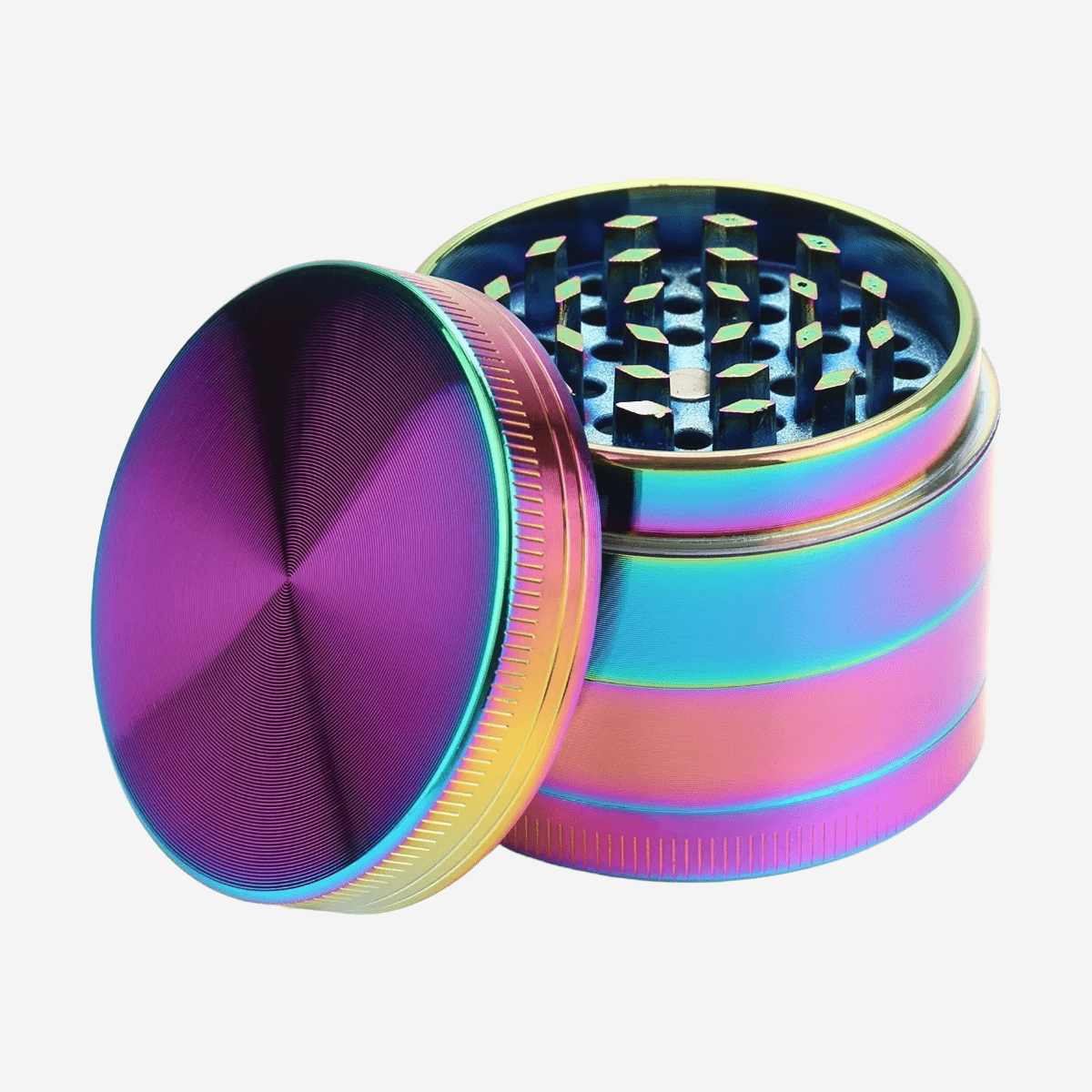 4 Part Rainbow Herb Grinder by Pipe420 – colorful four-piece herb grinder with sharp grinding teeth and kief chamber, perfect for wholesale herb grinders distributor Los Angeles, CA and smoking grinders wholesale USA – distributed by Pipe420 4 PART RAINBOW HERB GRINDER