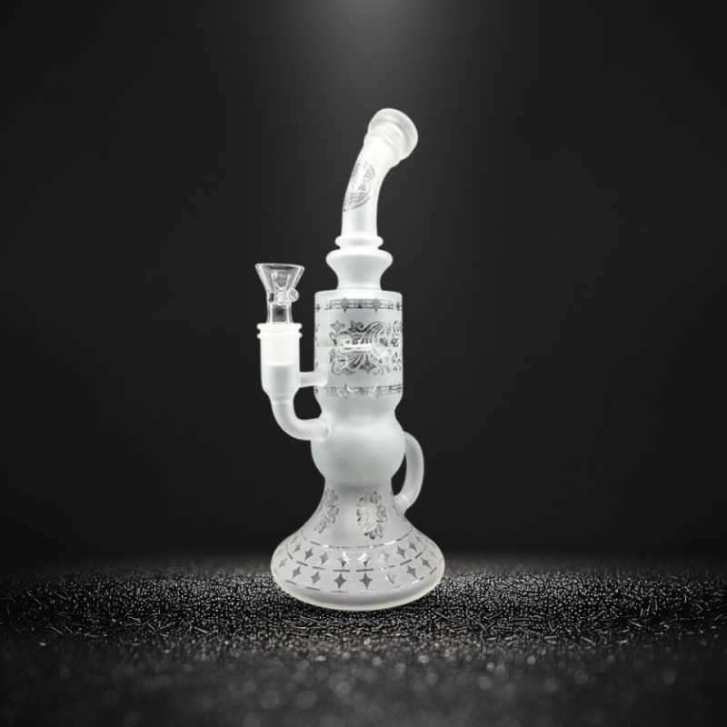 The 10-inch Frosted Pattern Dab Rig combines function with frosted artistry. Crafted from 9mm borosilicate glass, this rig features detailed etched patterns across the chamber and base, offering a premium look with durability built in. Its flared base ensures stability while the angled neck provides a comfortable smoking position.