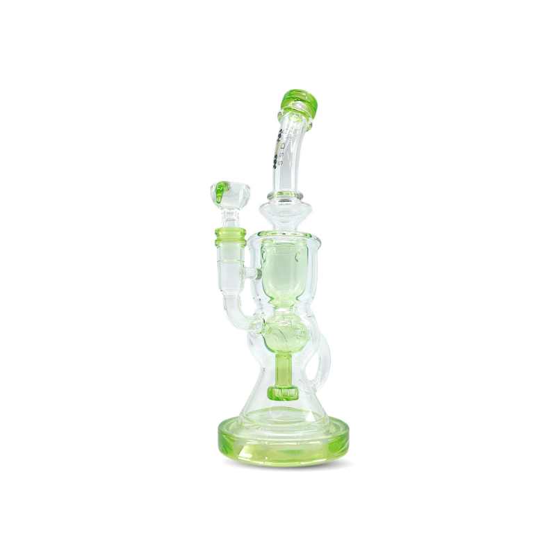 Take your sessions to the next level with the 10-inch Recycler Dab Rig. Designed with a double-chamber recycler system, this rig delivers ultra-smooth hits by continuously cycling water and vapor for maximum cooling and filtration. Crafted from durable 9mm borosilicate glass, it combines function with a bold splash of color accents.
