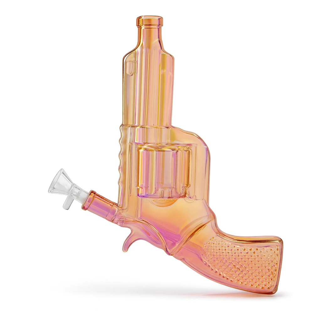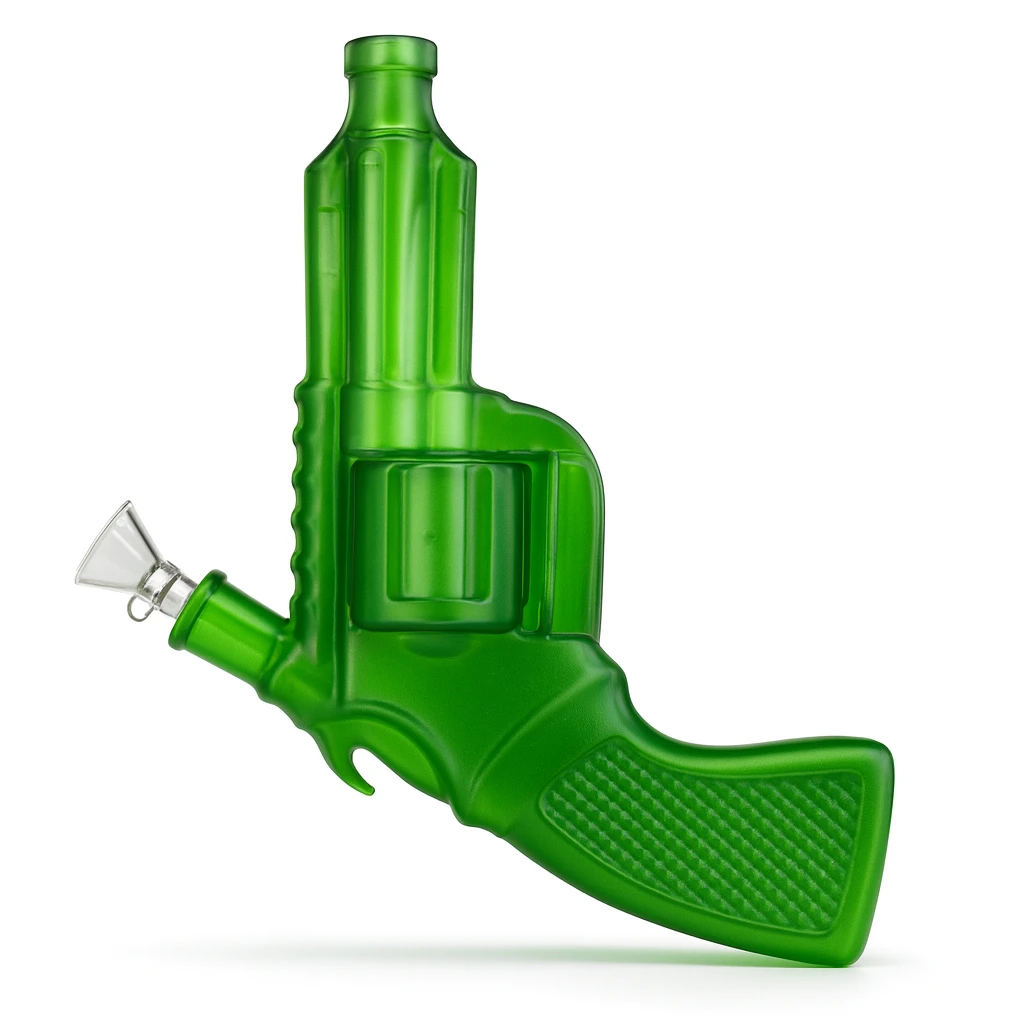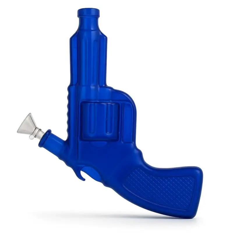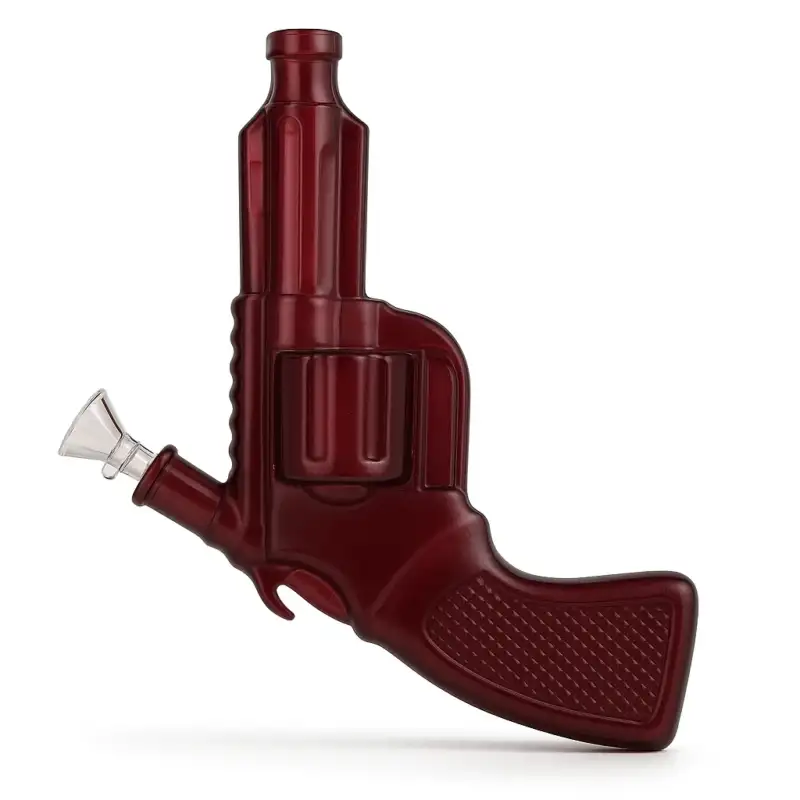 The Revolver Waterpipe delivers a bold and unique design for collectors and enthusiasts. Crafted from durable borosilicate glass, its pistol-shaped body combines novelty appeal with everyday functionality. The ergonomic handle and angled bowl make it easy to use, while the frosted glass finish in multiple vibrant shades ensures it stands out in any collection.