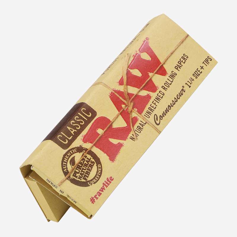The ultimate all-in-one rolling solution. RAW Classic Connoisseur 1¼ combines RAW’s signature unrefined papers with RAW Original Tips, all neatly held together by a RAW-branded elastic band.