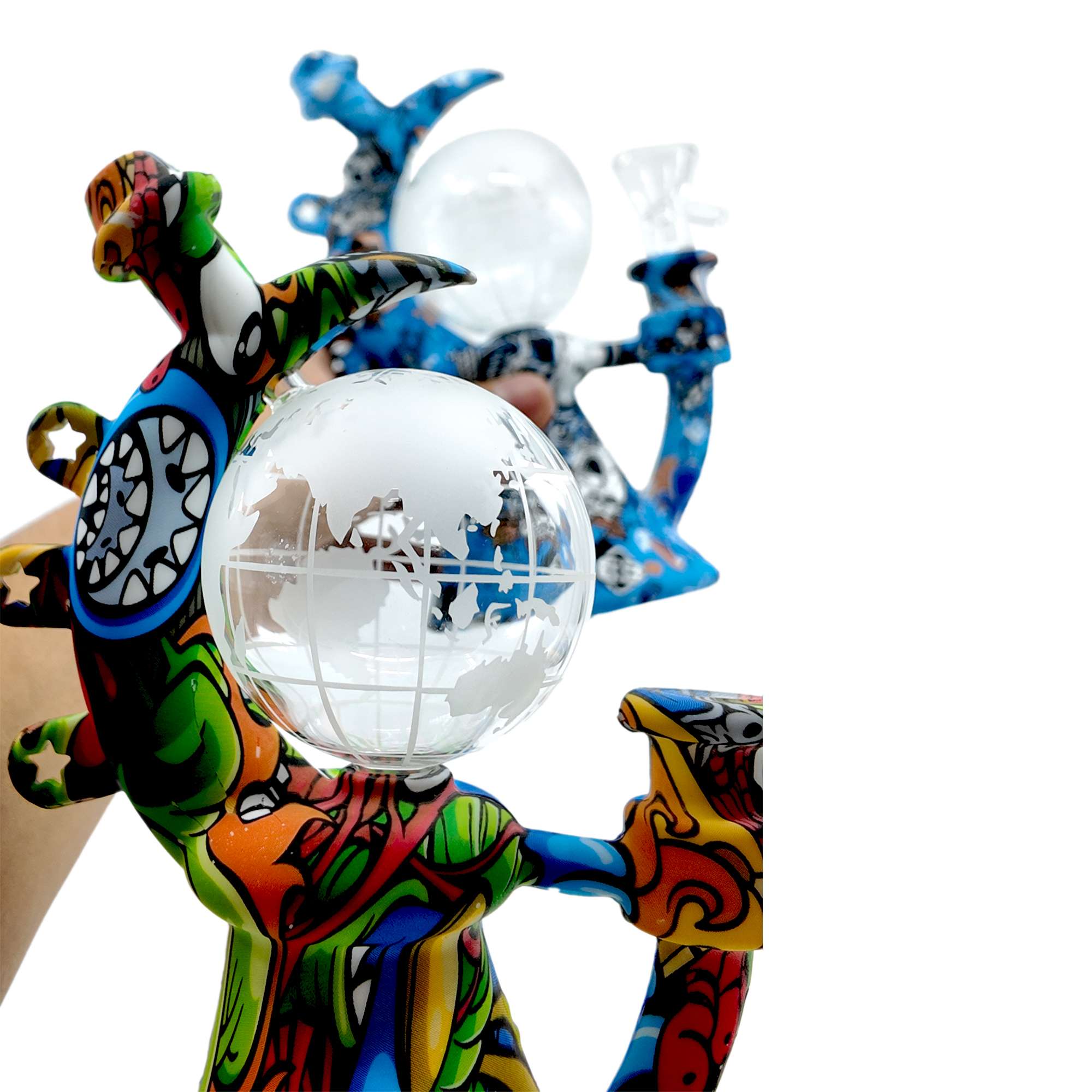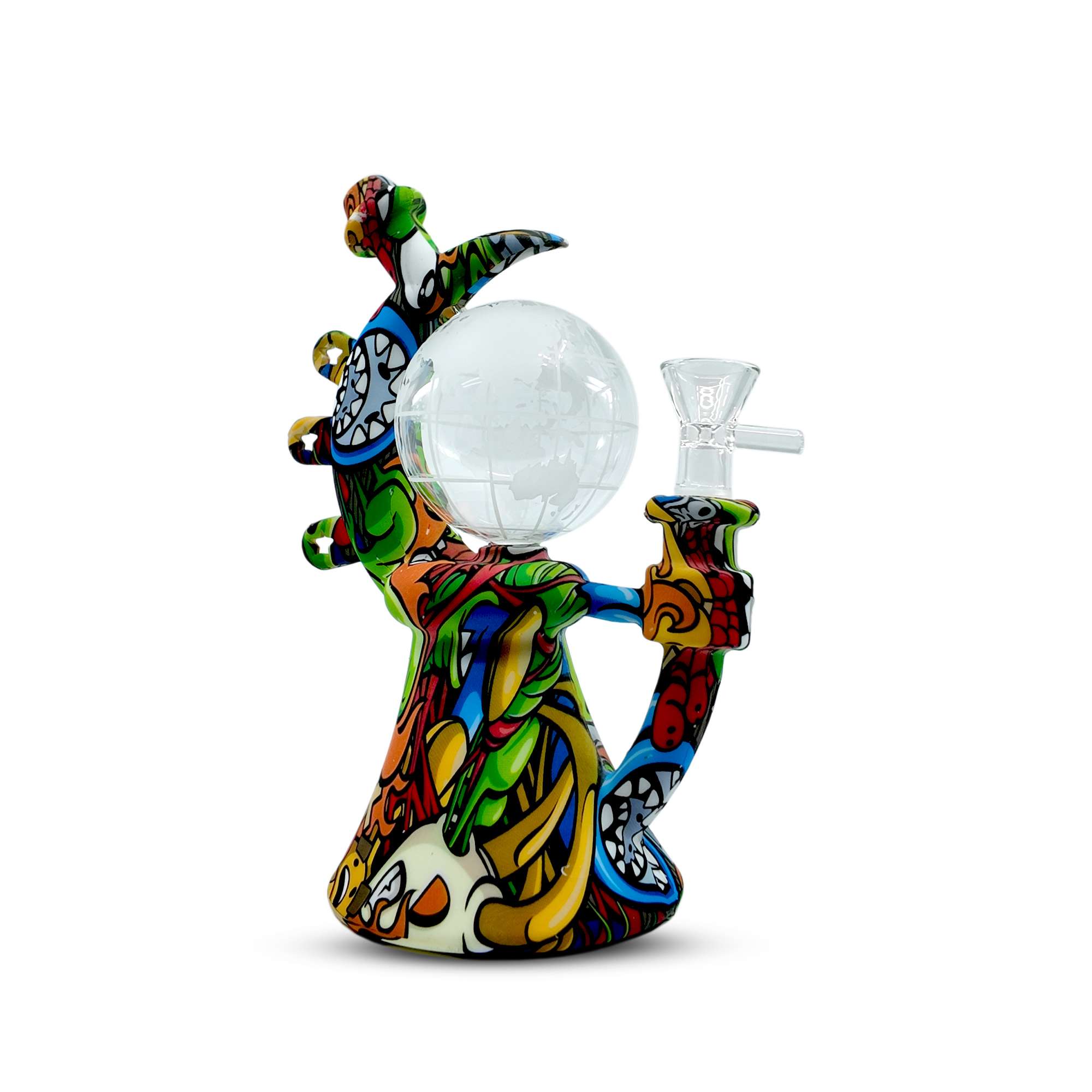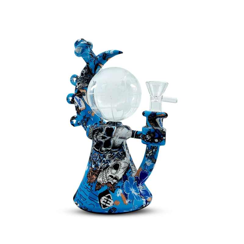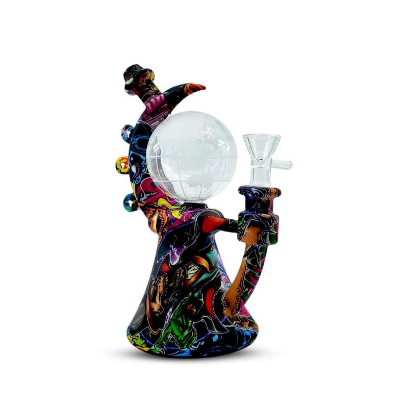 Take your sessions out of this world with the 8-inch Cosmic Globe Silicone Water Pipe. Designed with a durable silicone body wrapped in vibrant full-print designs, it features a striking globe-shaped glass chamber etched with world map details. The curved neck and sturdy base ensure comfort and stability, while the hybrid silicone + glass construction delivers both durability and smooth performance.